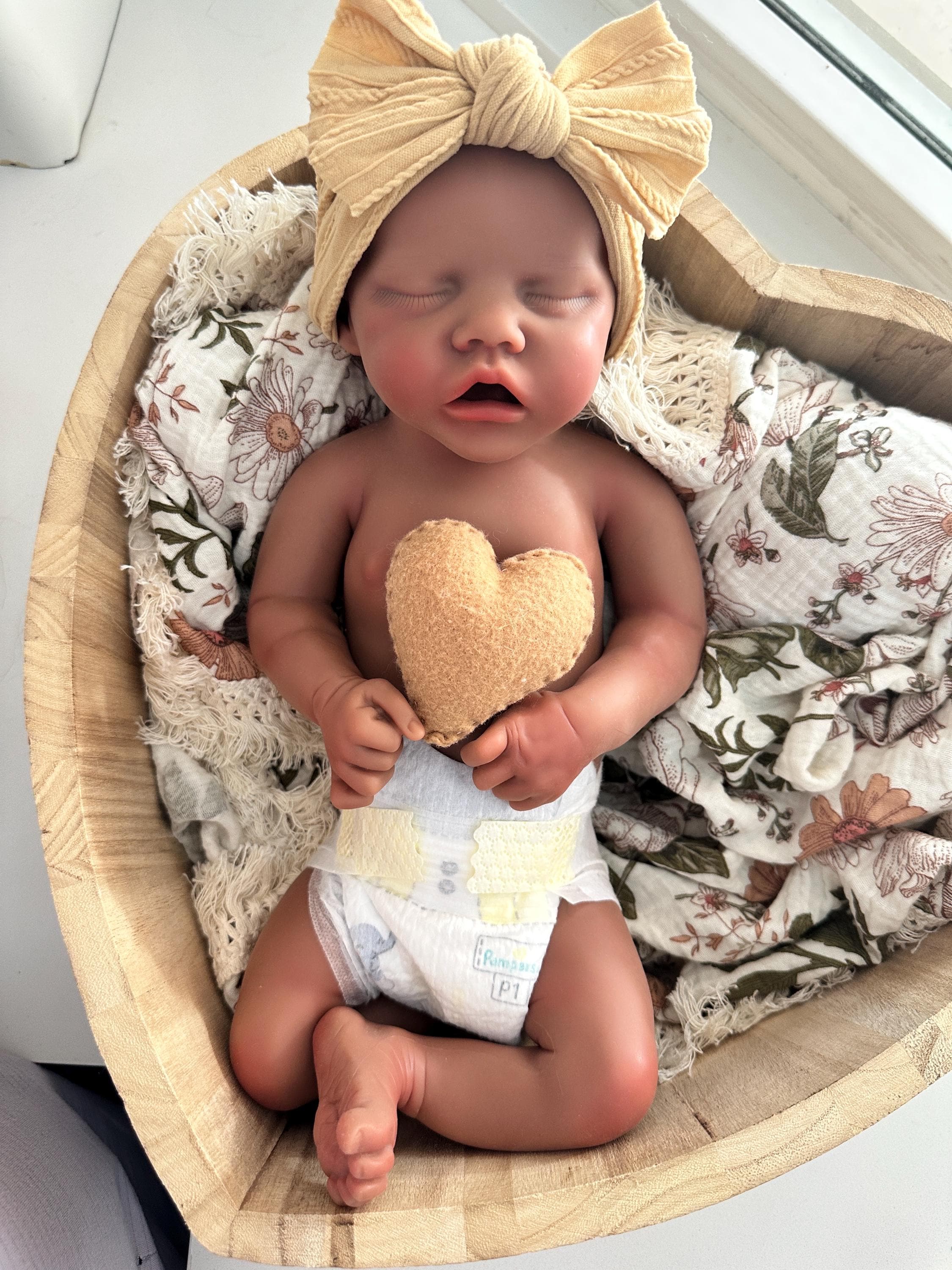 To keep Piper’s skin soft and touchable like a real baby, I recommend bathing with a mild baby soap, then using matting powder designed specifically for silicone dolls or corn starch.