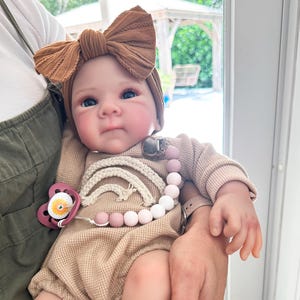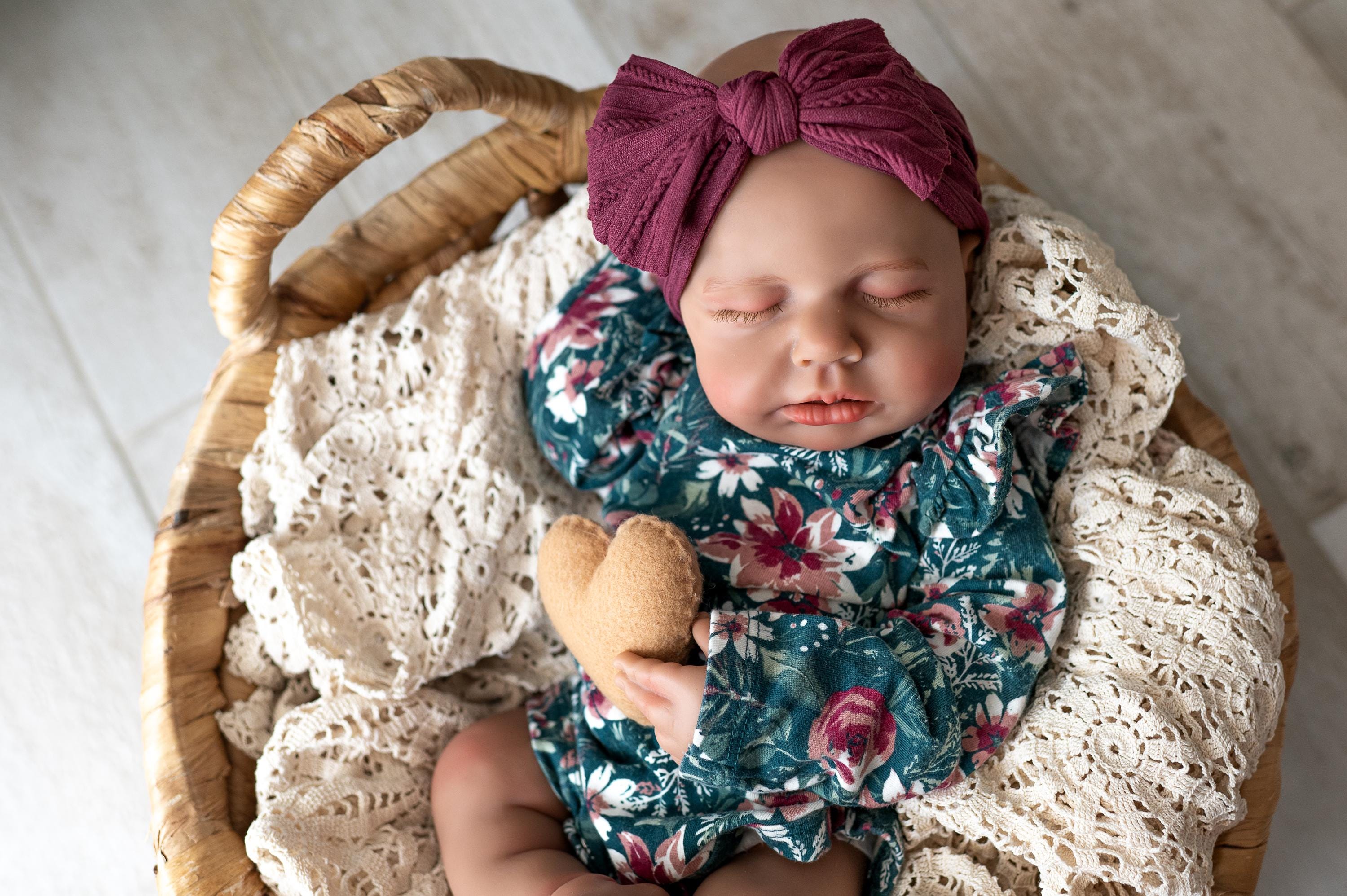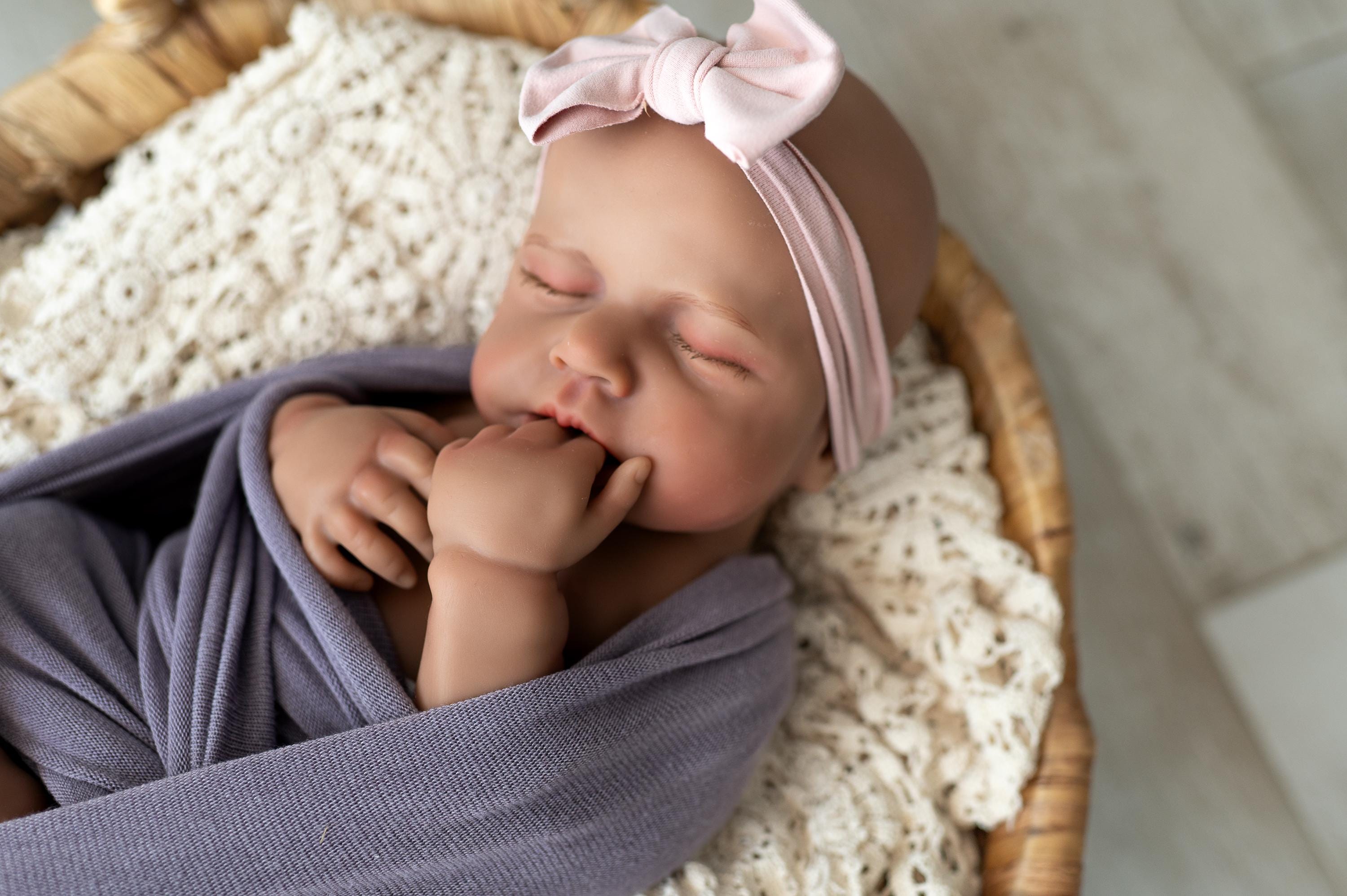 Please note: Mila has a silicone pour spot on the top of her head. A headband or a little bonnet hides this. She has no seams on the arms and legs! Lastly, this is an anatomically correct baby girl. All silicone dolls can have some minor imperfections due to the way they were poured and produced. Please beware of this.