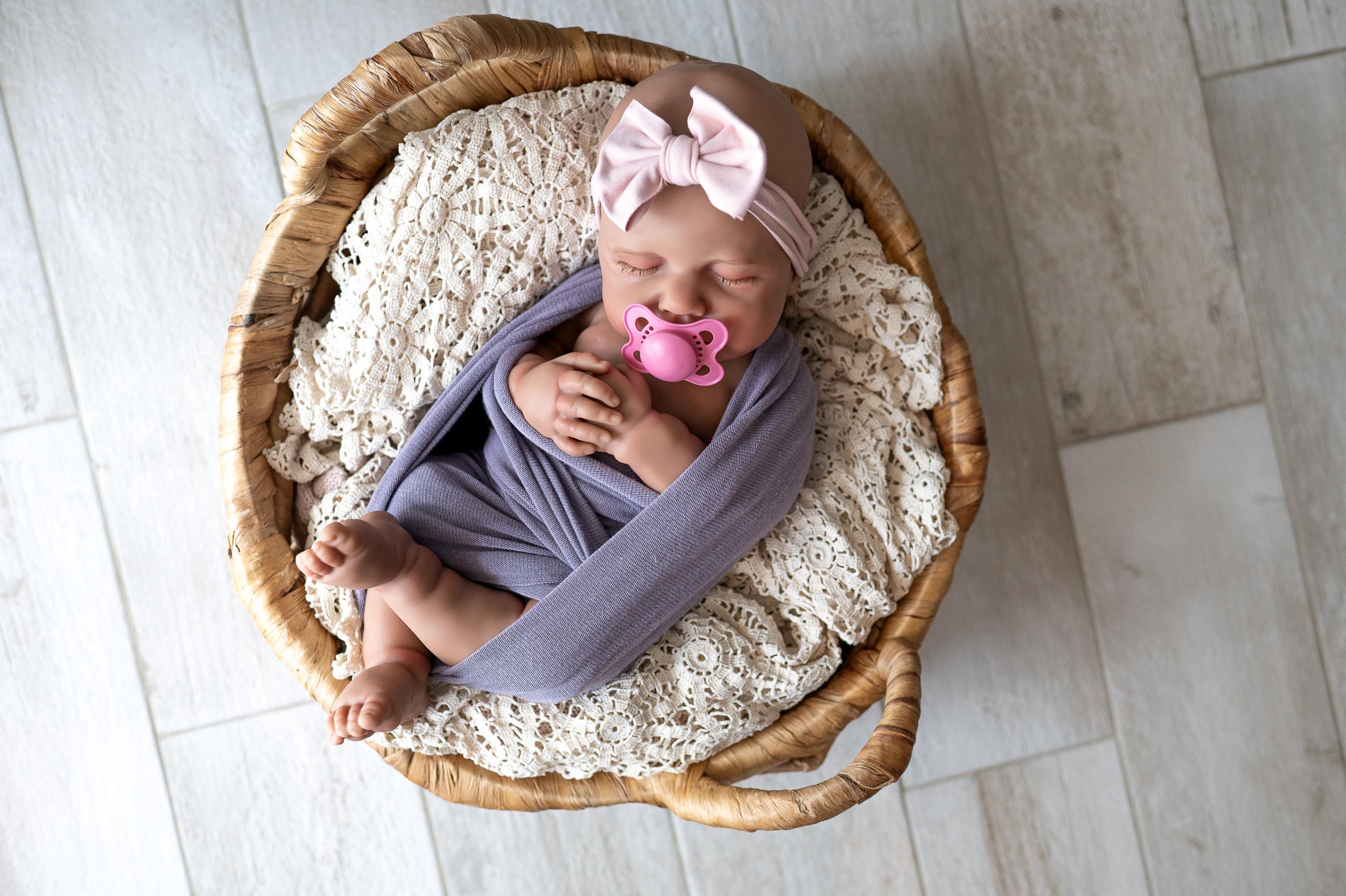 Forever Young Dolls Co Birth Certificate Dressed in a Gerber long sleeve kimono shirt and diaper Hospital ankle bracelet An extra adorable outfit Newborn socks A boho bib A boho headband A modified pacifier (if you opt to have her mouth opened) A bottle A burp cloth