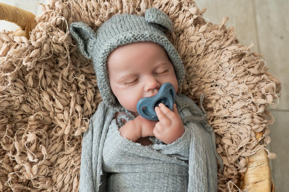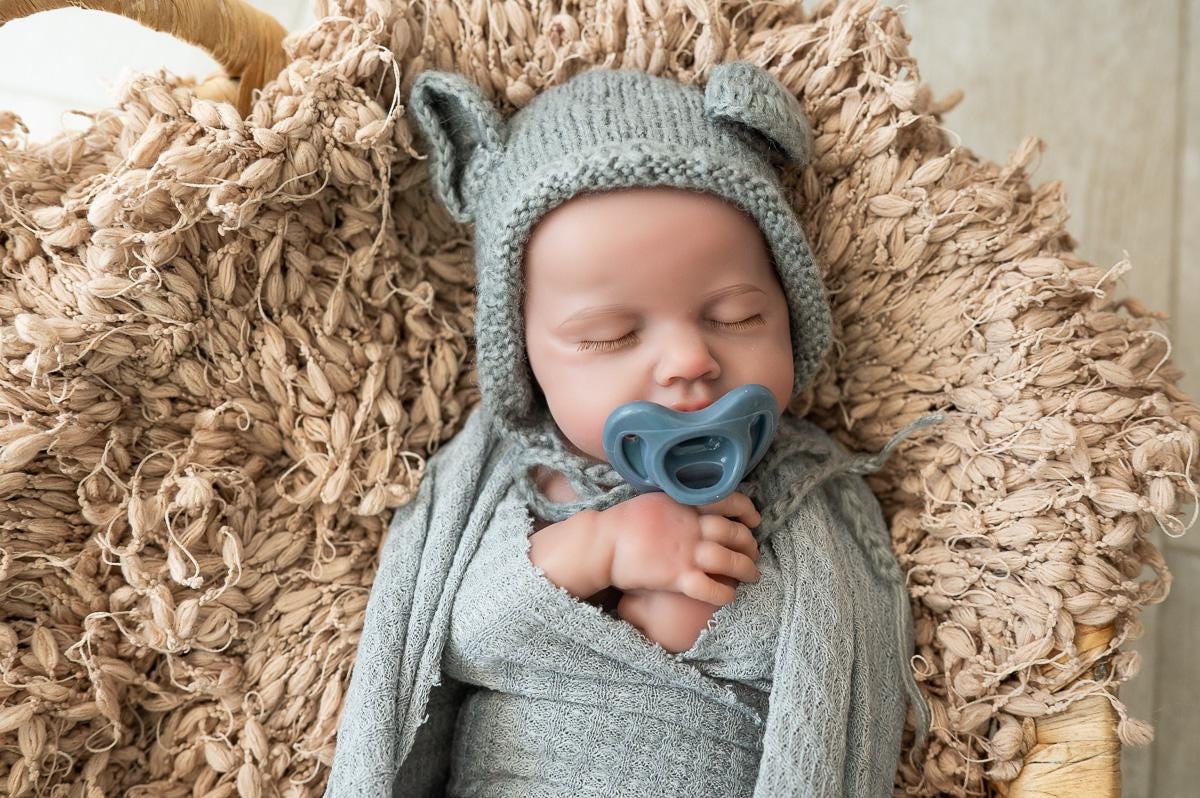 To keep Asher’s skin soft and touchable like a real baby, I recommend bathing him with a mild baby soap, then using matting powder designed specifically for silicone dolls, or you can use baby powder, or corn starch.