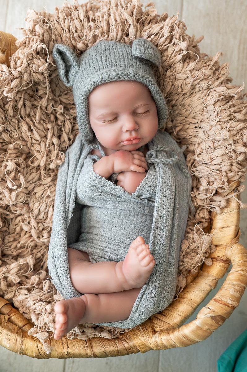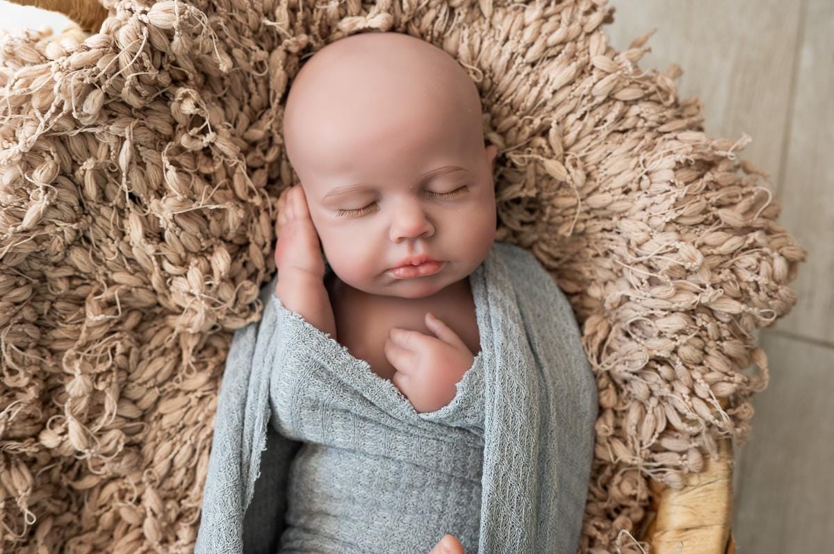 To ensure his skin looks natural, I’ve bathed and matted him with professional-grade doll matting powder, which eliminates the shiny look and sticky feel of silicone dolls. You can bathe him too!